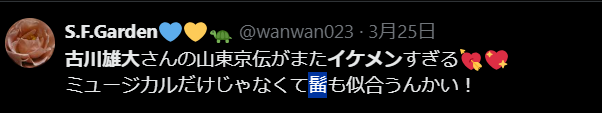 古川雄大さんって小顔+高身長+イケメン+歌える+ダンス上手だからフェルゼンやルドルフみたいな正統派西洋人イケメンの役が合うって思ってたんですよ。実際合ってたし。10年ぐらい古川さんの出演作色々観てこんな感じかなって何となくわかってると思っていたのですが、、、昭和元禄落語心中と pic.twitter.com/8sj0q5HEAD